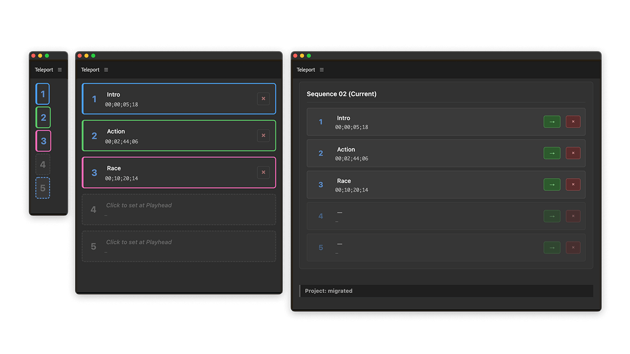 Teleport is the simple solution that makes you think, "Why doesn't this already exist?" It lets you drop a digital anchor anywhere in your timeline, allowing you to instantly jump back to that exact frame. No more searching for colored markers or memorizing timecodes!